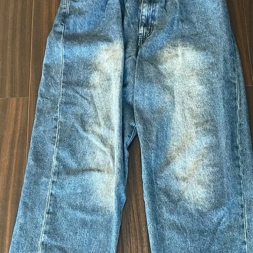 와이드 레그 데님 팬츠 블루 페이드 가공