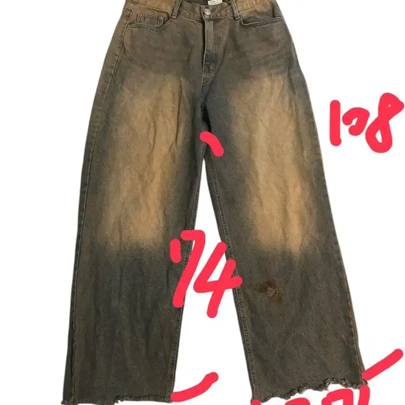 플레어컷 데미지 가공 그라데이션 데님 팬츠