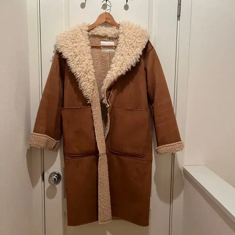 LaLeia 브라운 무스탕 코트 후드 부착