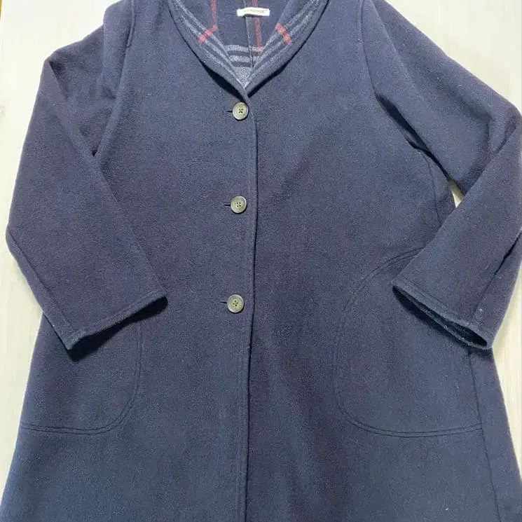 SELF SERVICE 울 혼방 네이비 코트 체크 옷깃 L 사이즈
