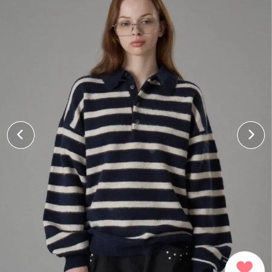 ONCILY 스트라이프 니트 긴팔 피케 셔츠 네이비