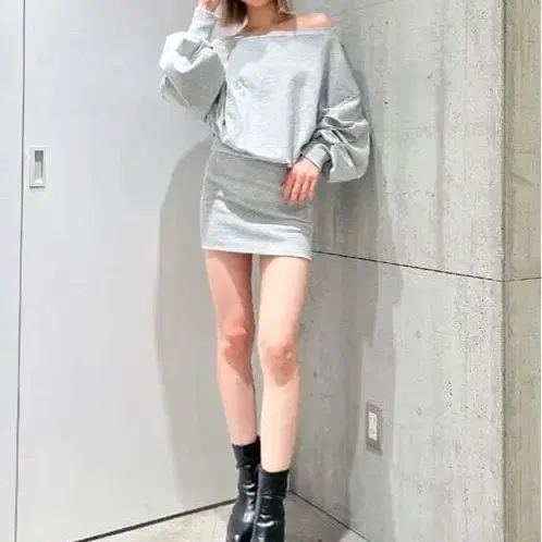 GYDA 오프숄더 그레이 미니 원피스