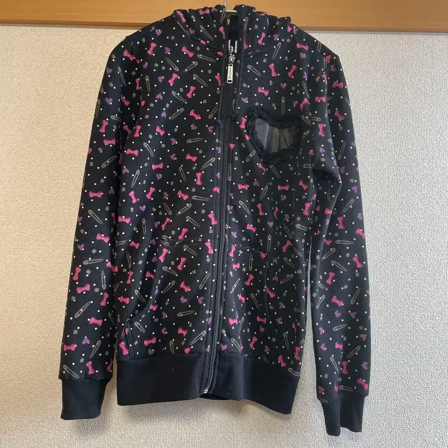 Abbey Dawn 올 패턴 지퍼 후드티 S 블랙 하트 포켓