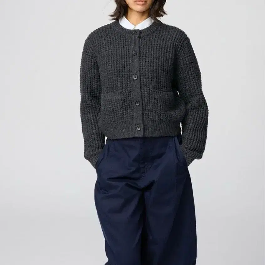 와플 니트 크루넥 가디건 M 다크 그레이