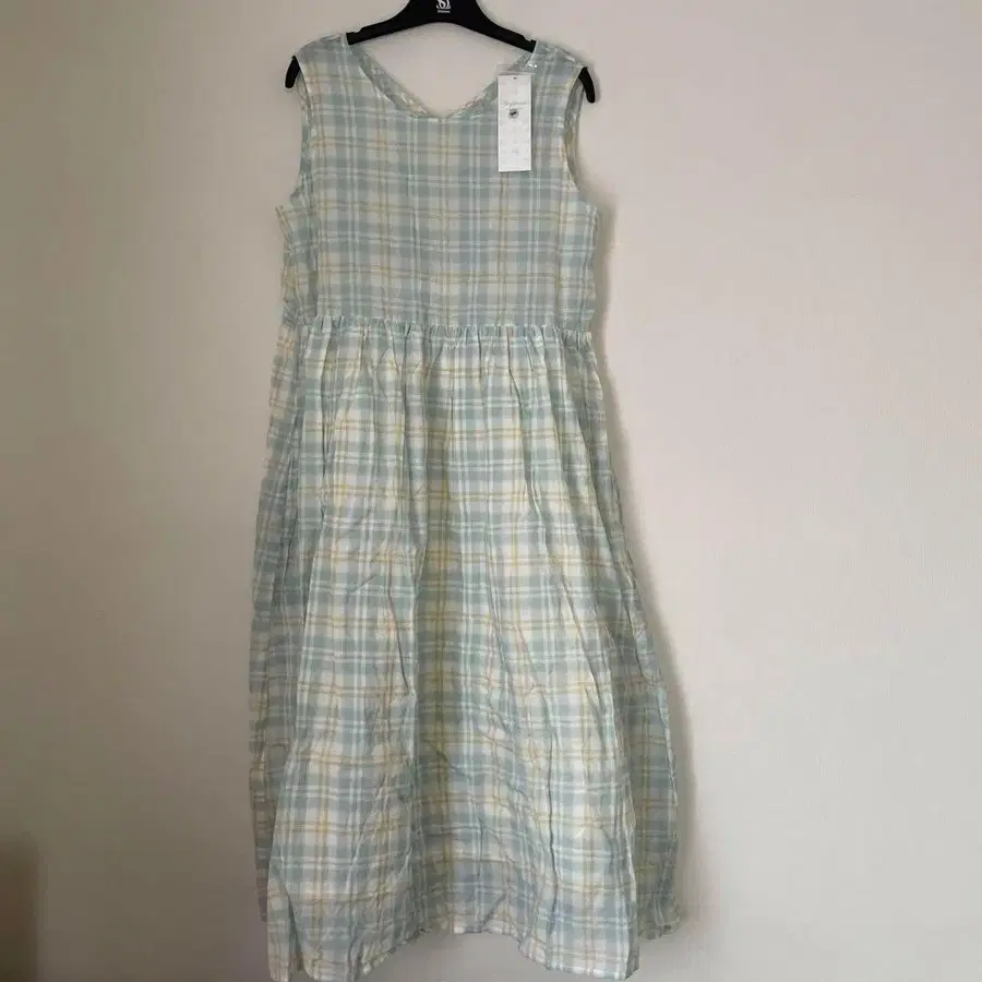 사만사 모스모스 그린 체크 무늬 슬리브리스 원피스
