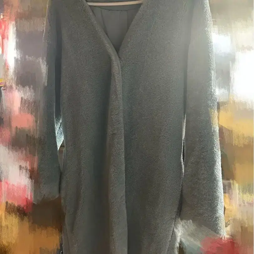스카이블루 플리스 롱 코트