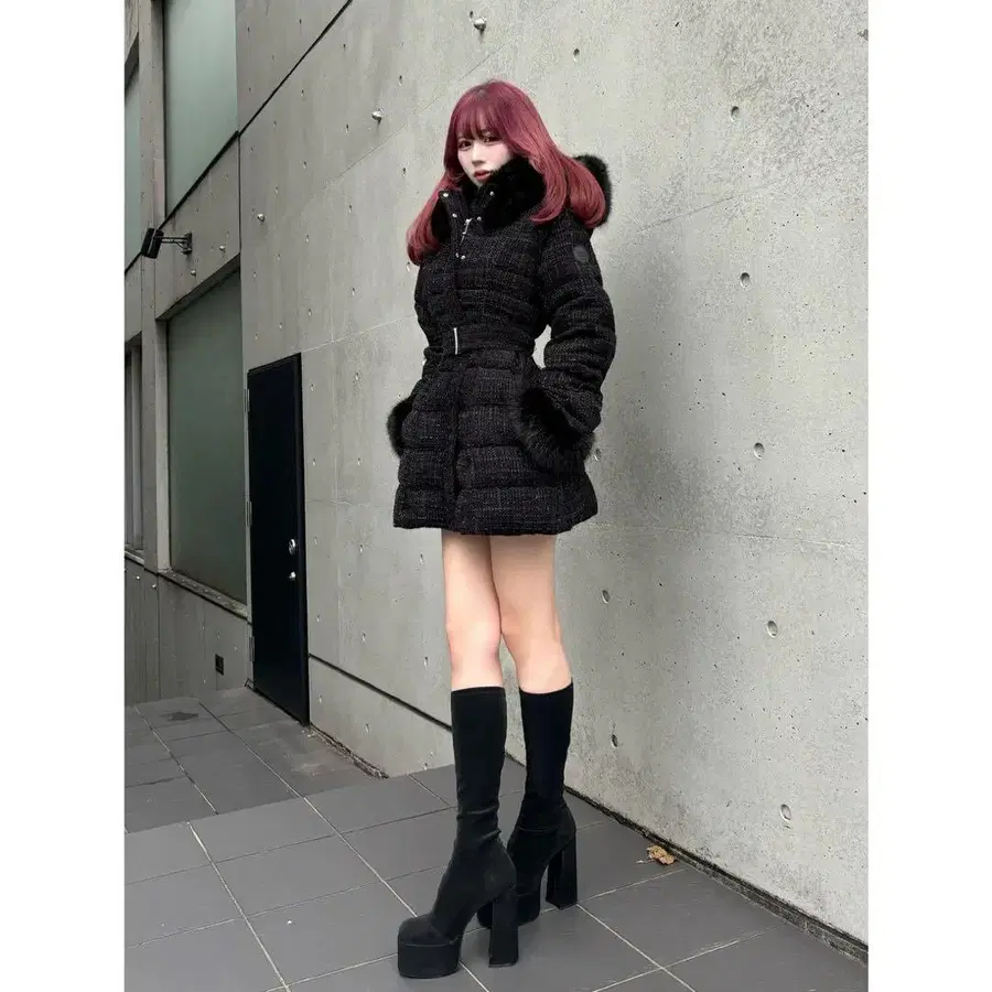 다리치 레이디 미디 트위드 다운 코트 2025 블랙 S 사이즈