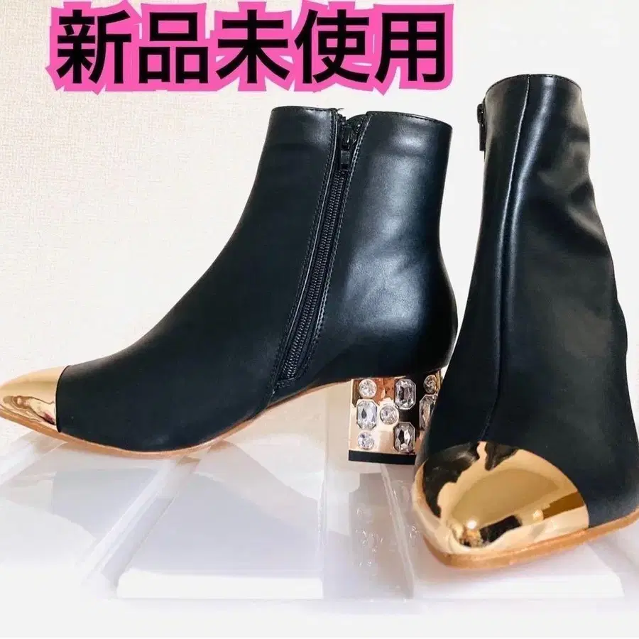 부티 숏부츠 비쥬 반짝이는 스톤 블랙 가죽