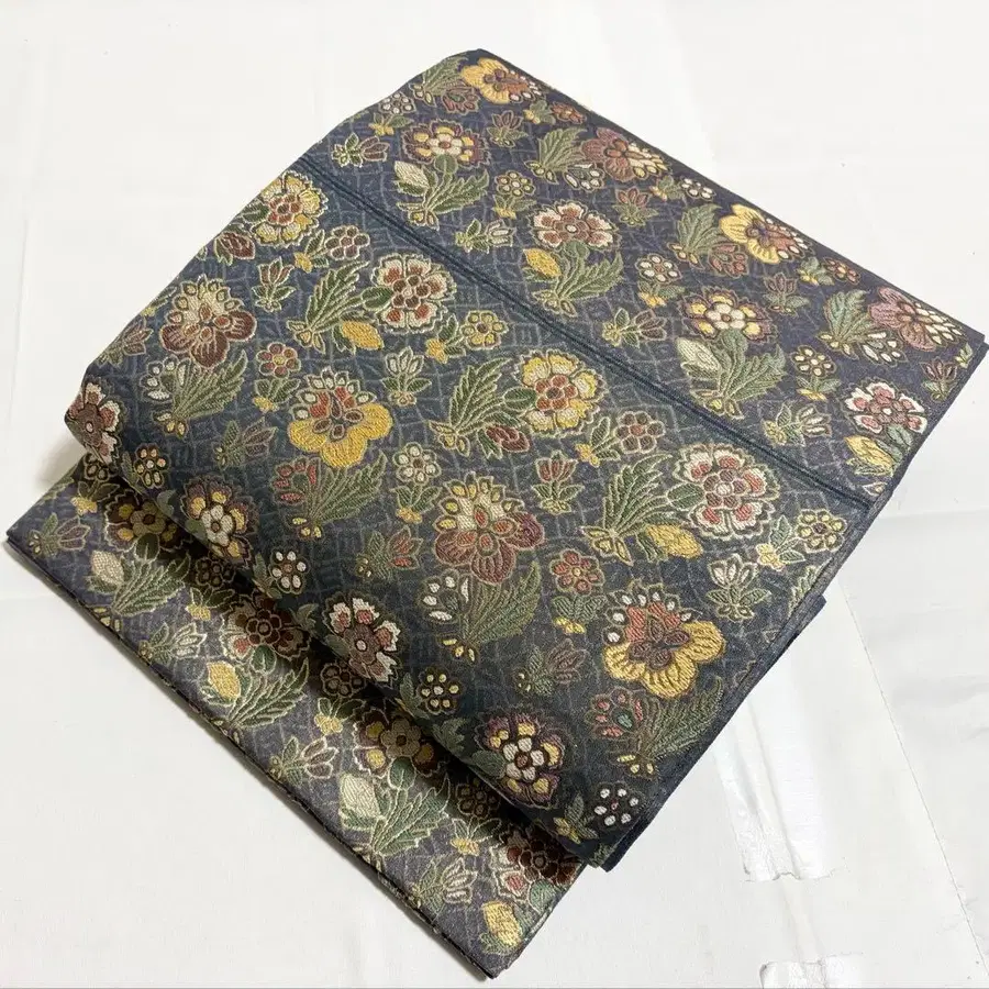 A5 사라사 단문 당초 당화 금실 순수 실크 육통 후쿠로 오비 포멀 O2