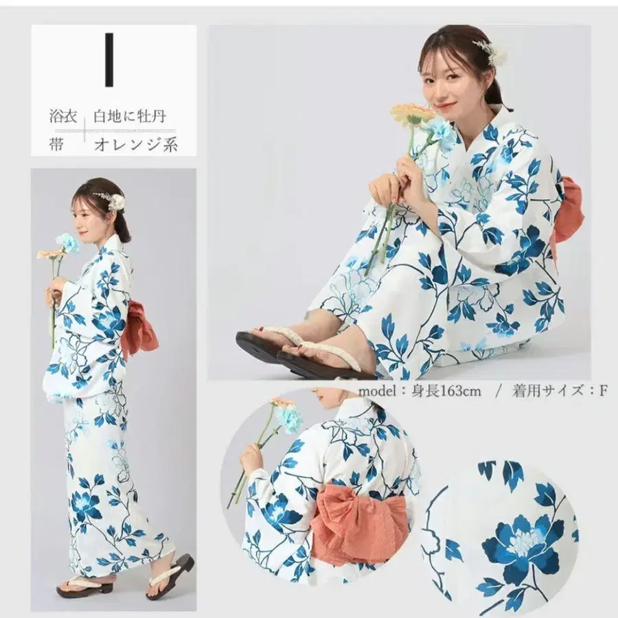 [ 오비 없음 ] 세퍼레이트 유카타 화이트 베이스에 모란