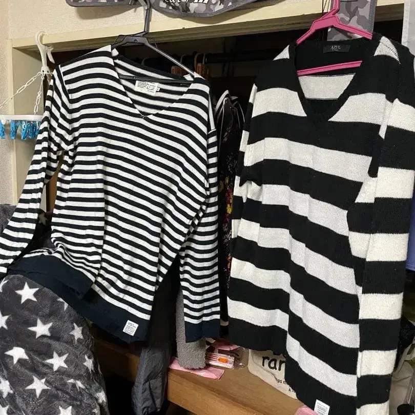 AZUL by moussy 블랙 화이트 보더 그런지 V넥 니트 2장 세트