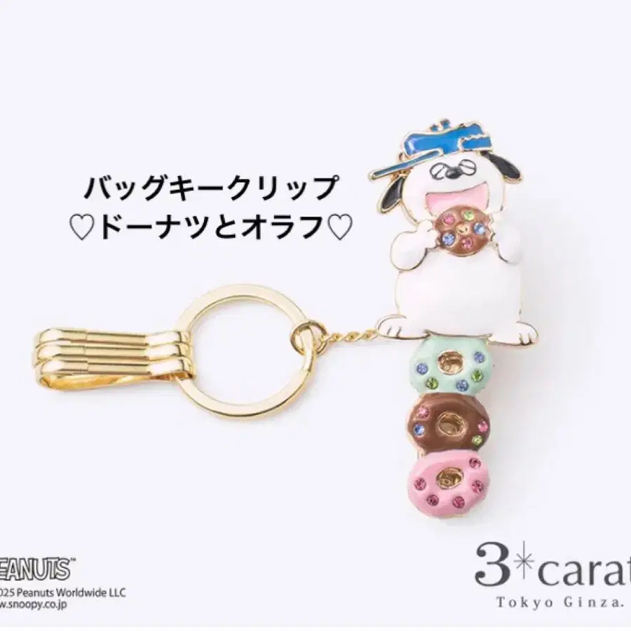 미사용 쓰리 캐럿 백 키 클립 도넛과 올라프 컬러풀 골드