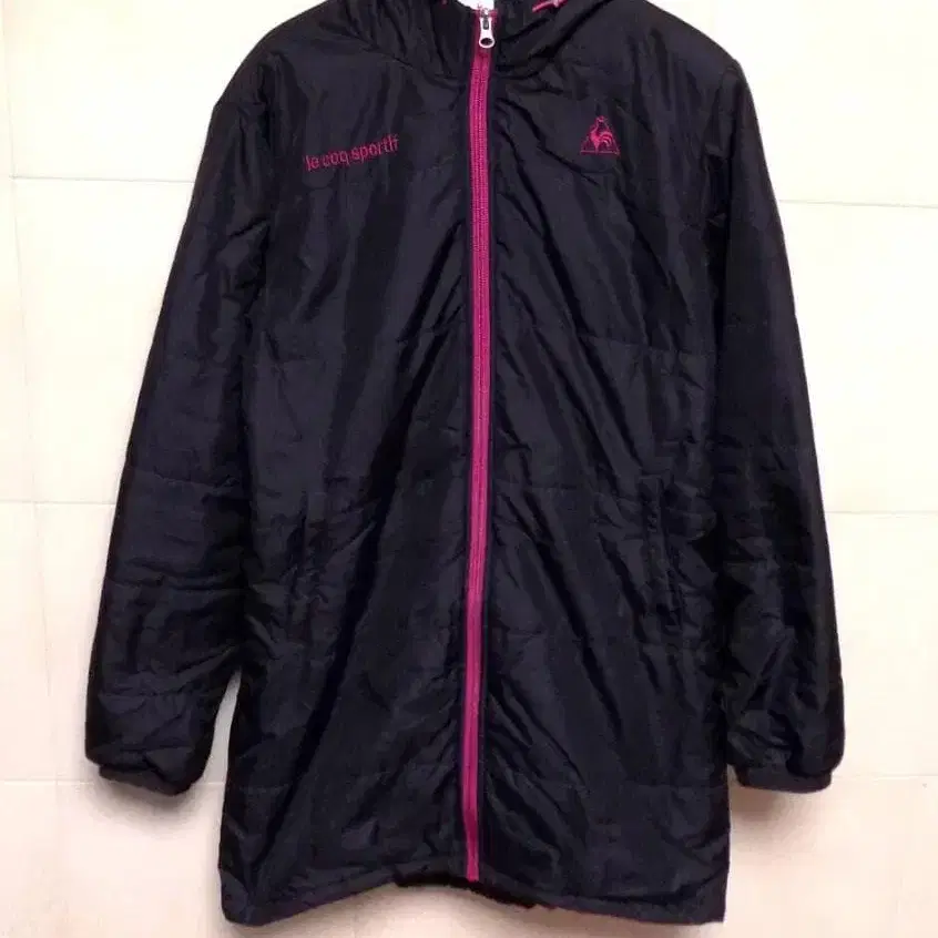 르꼬끄 블랙 후드 부착 충전솜 벤치 코트 L