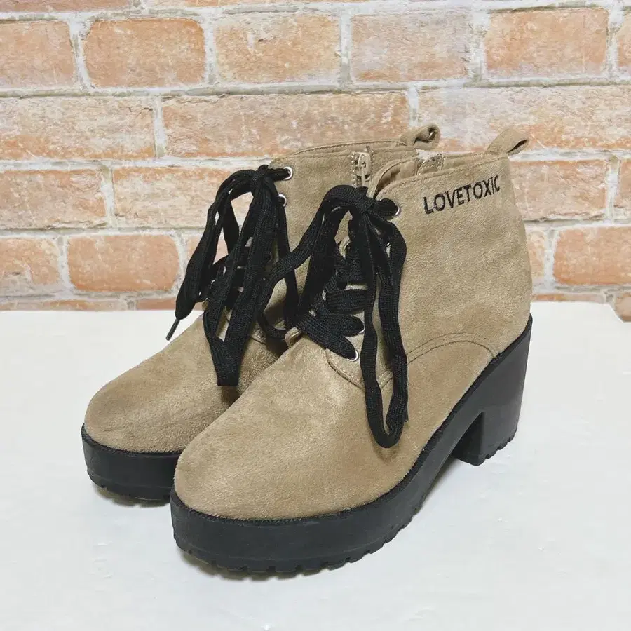 [ LOVETOXIC ] 숏부츠 사이드 지퍼 스웨이드 (M) 베이지 계열