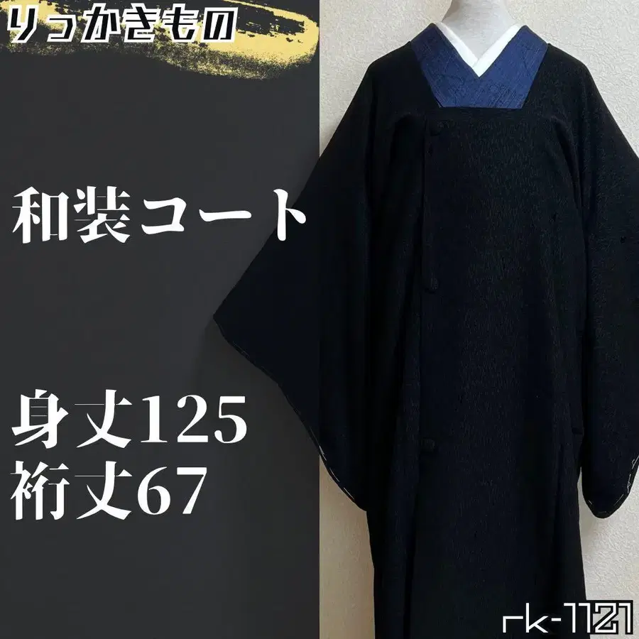 rk-1121 일본 의류 코트 롱 기장 와나 비로드 순수 실크 블랙