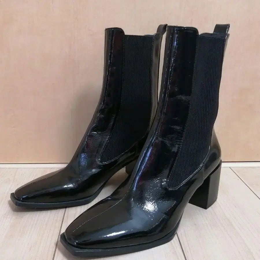 ZARA 에나멜 사이드 고어 부츠 청키힐 25.5cm