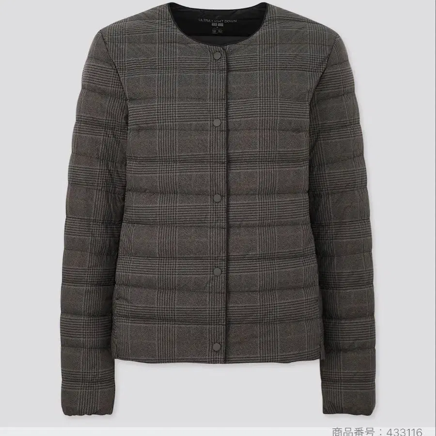 인기 단종 울트라 라이트 다운 컴팩트 자켓 체크 노카라 다크 그레이