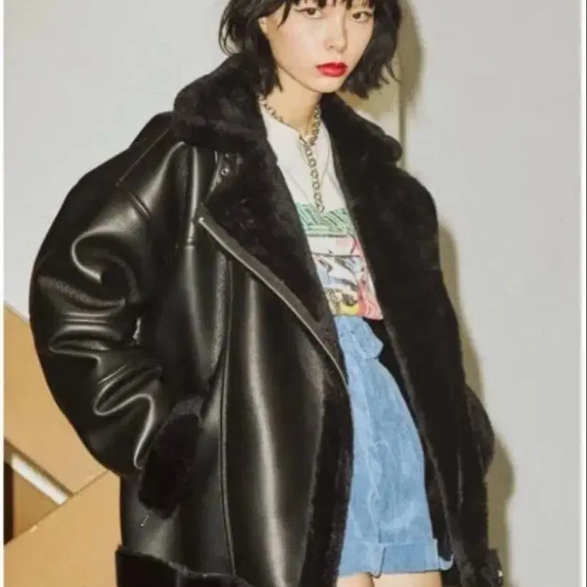 jouetie 에코 무스탕 라이더 자켓 가죽 M 사이즈