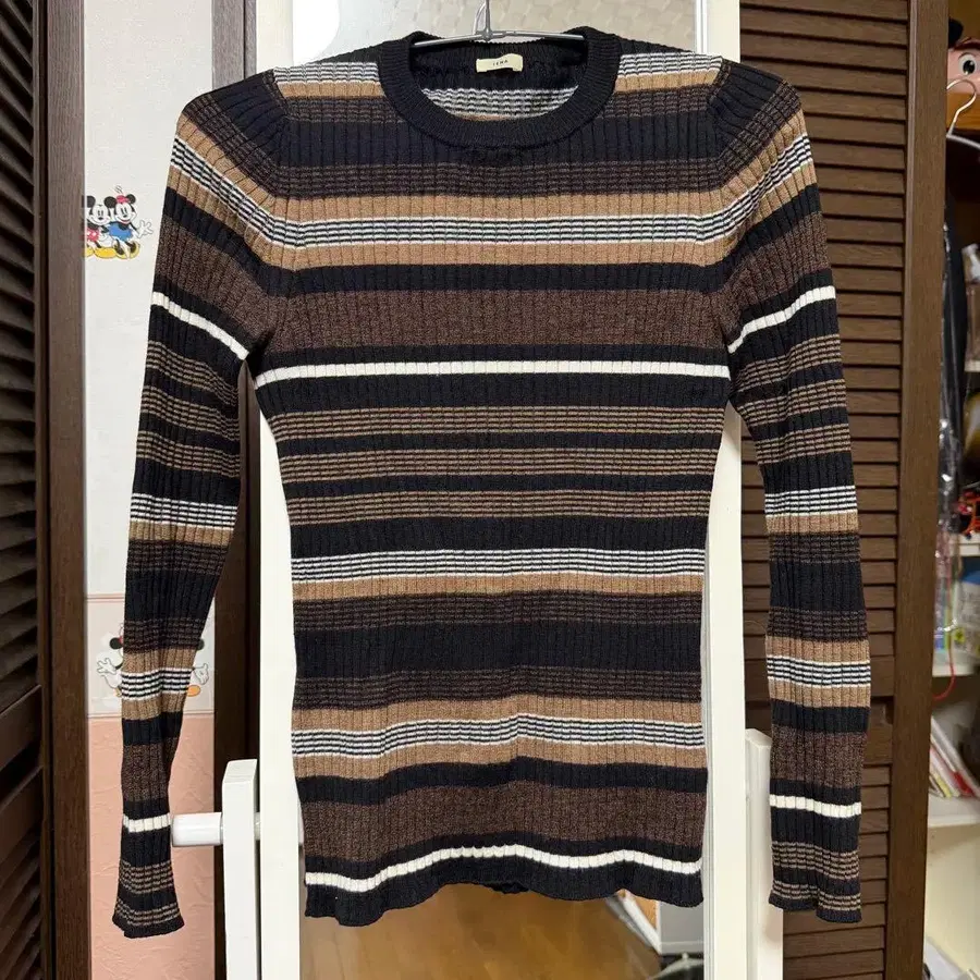 IENA 리브 크루넥 풀오버 울 보더 브라운