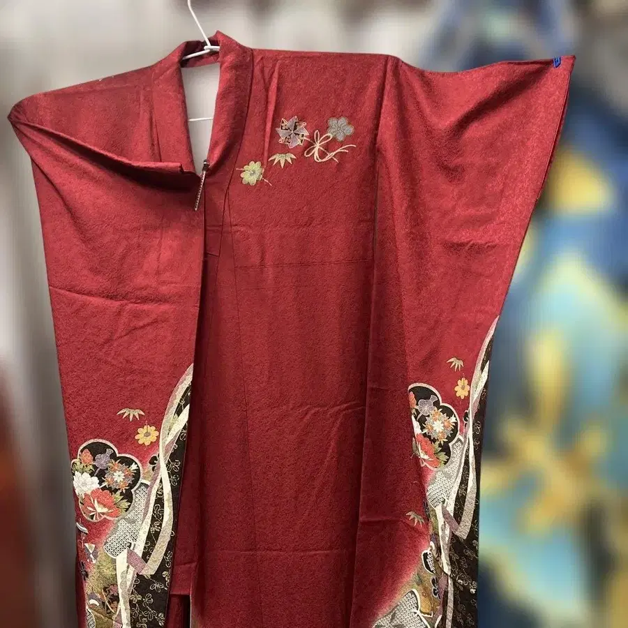 빨간색 꽃무늬 후리소데 기모노