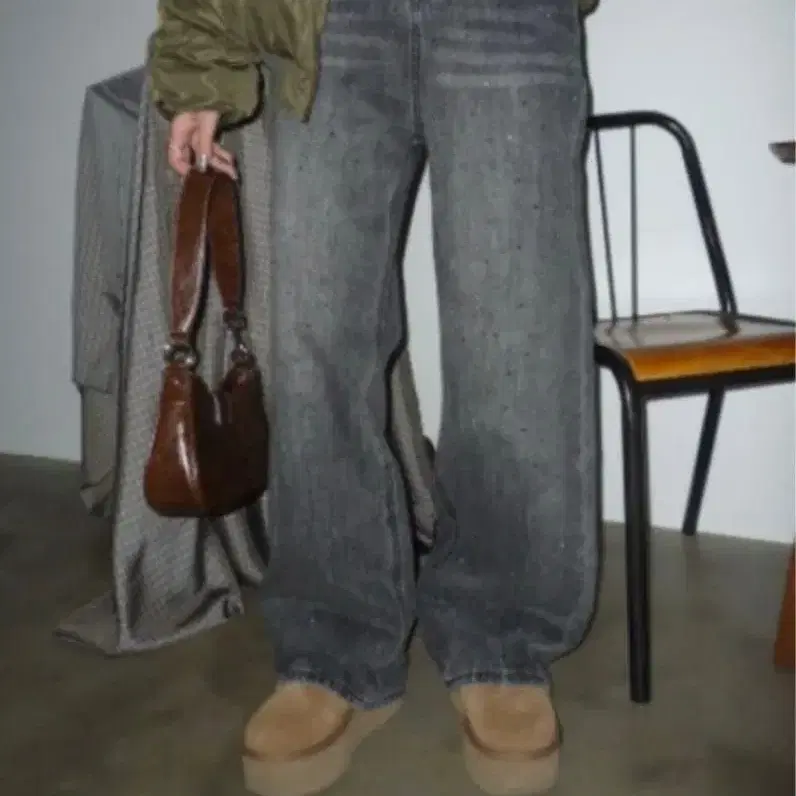 SHAGGIE 그레이 스트레이트 데님 팬츠