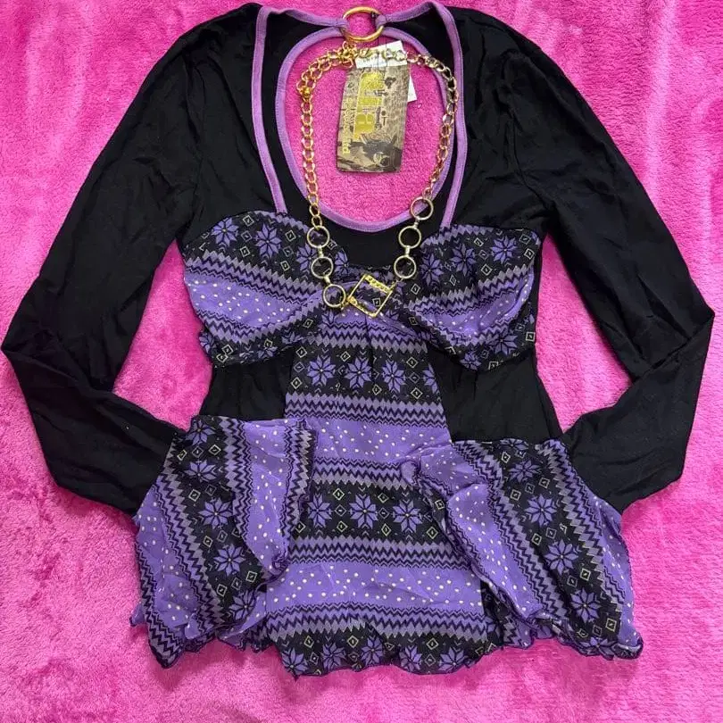 보라색과 블랙 프릴이 달린 상의 택 포함 새상품