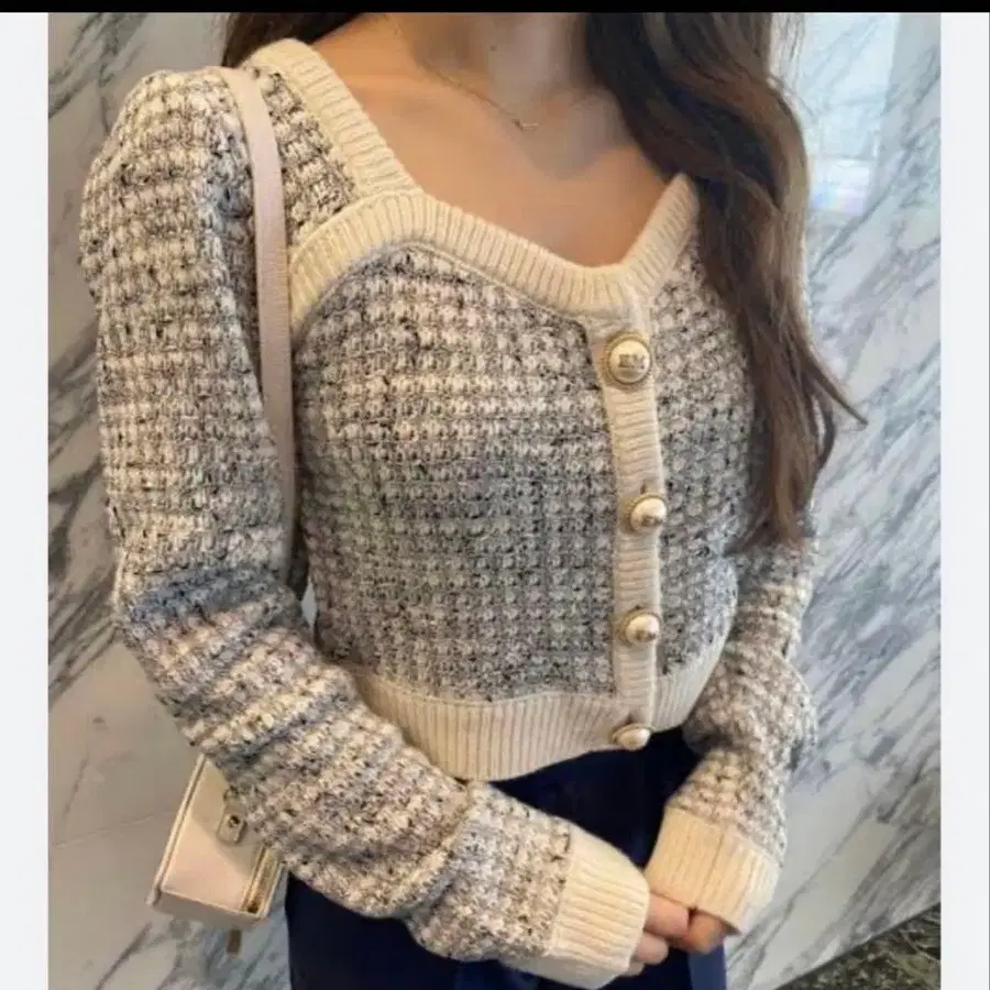 에이미 이스트 월 니트 트위드 하트넥 가디건