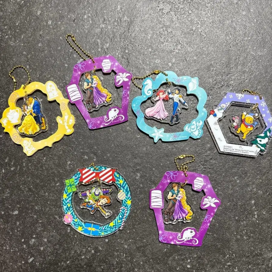 디즈니 크리스마스 오너먼트 복권 아크릴 키링 5종 6개 세트