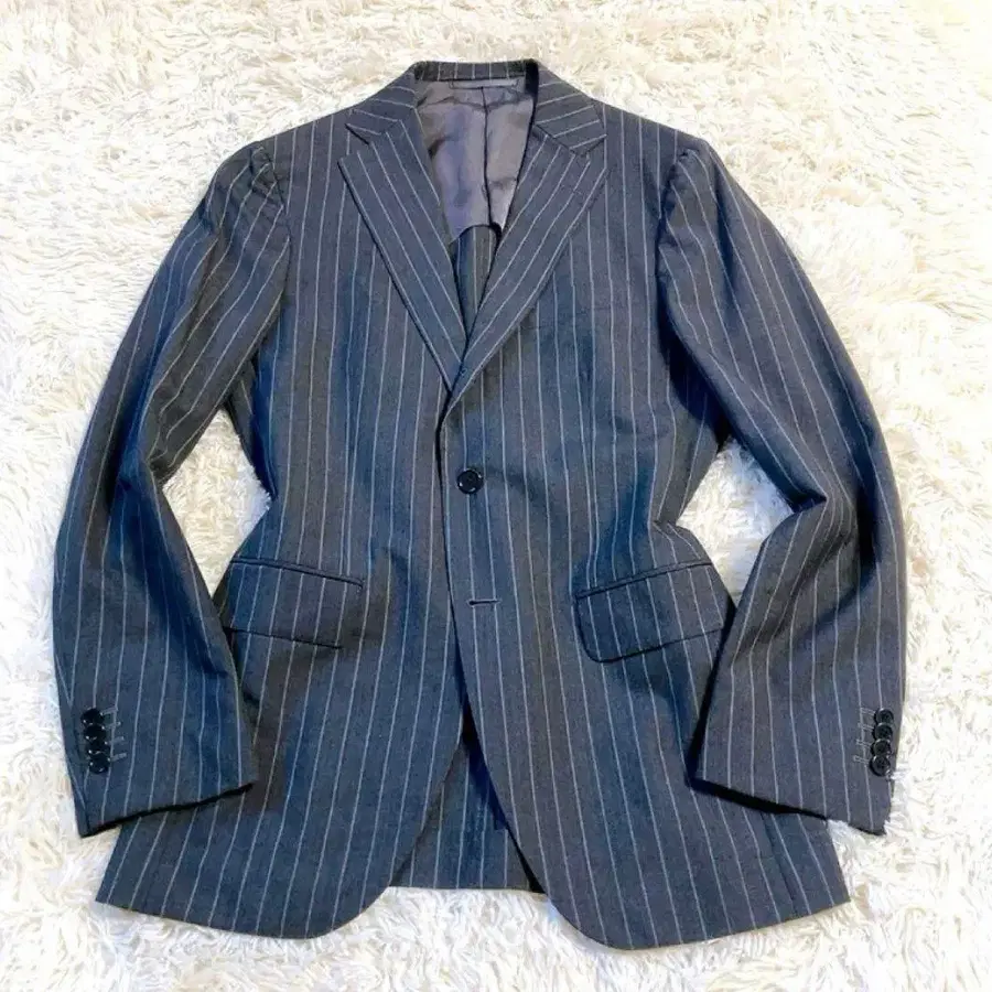 • 컨디션 최상 쉽스 단추 3개 블랙 플란넬 스트라이프 수트 L