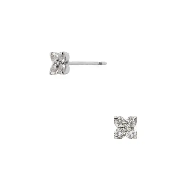 큼직한 화이트 토파즈로 4개의 꽃잎을 본뜨고, 꽃 중심에는 1개의 다이아몬드를 세팅했습니다.