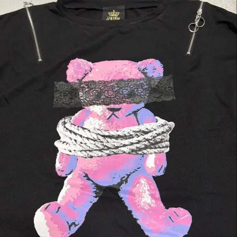 listen flavor 곰 지퍼 반팔 셔츠