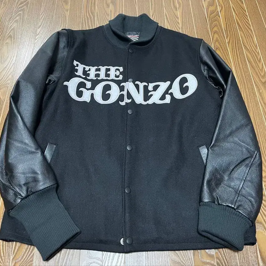 THE GONZO 바시티 자켓 블랙 가죽 소매