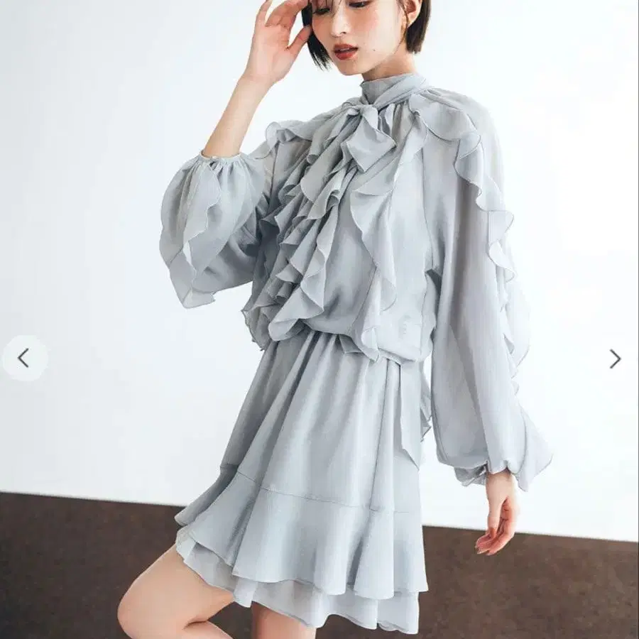 COCO DEAL 캐스케이드 보타이 프릴 미니 원피스