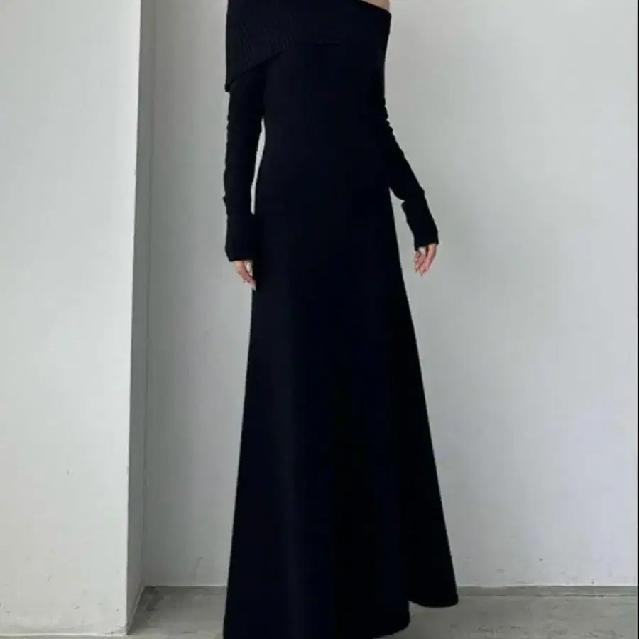 Louere 오프숄더 플레어 니트 원피스 블랙 M T 사이즈