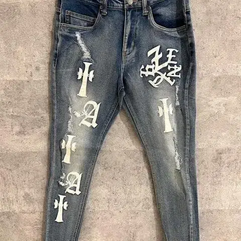 LIBERTE PU 크로스 패치워크 스키니 데님 블루 M 스트레치