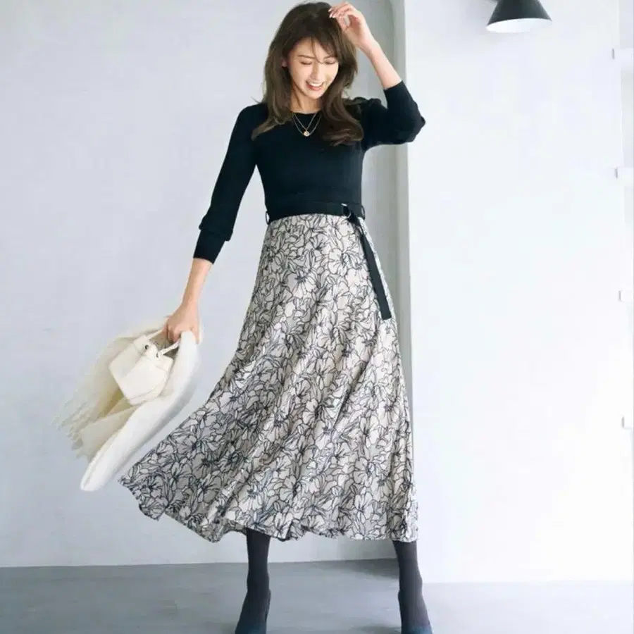 JUSGLITTY 배색 레이스 도킹 니트 원피스