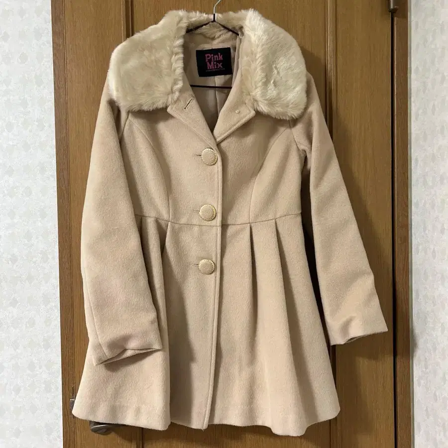 Pink Mix 베이지 퍼 옷깃 롱 코트