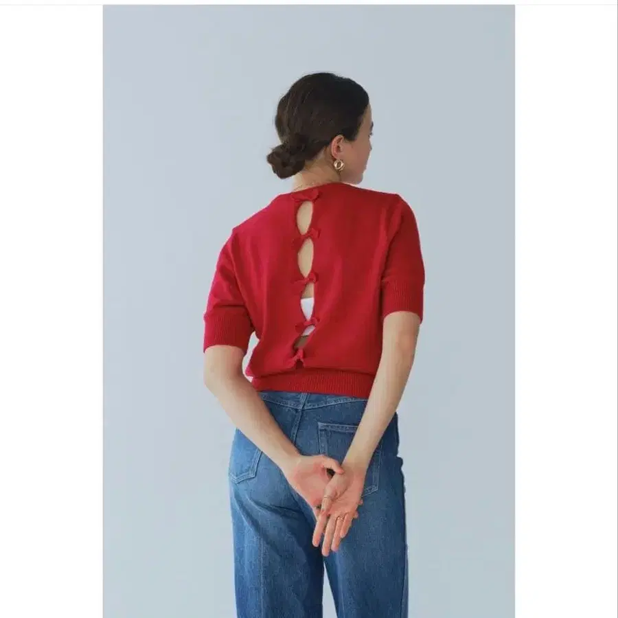 [ 새상품 미사용 ] yori 백리본 숏 슬리브 니트