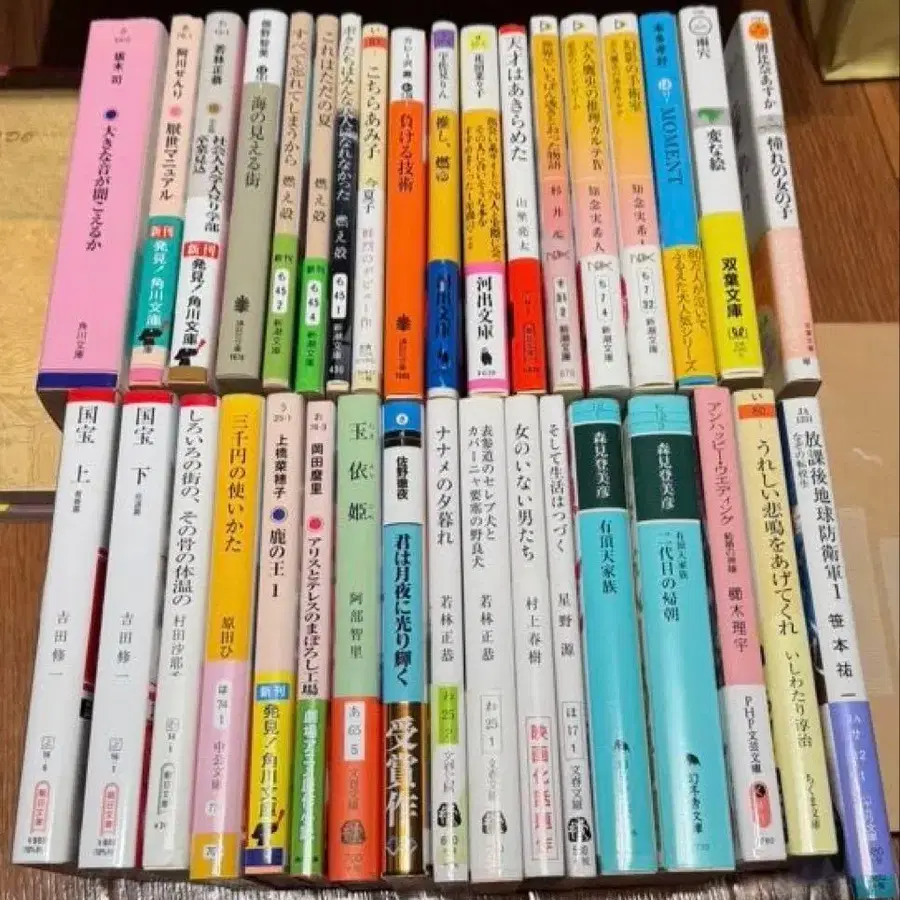 도서 44권 묶음 판매입니다. 중고품이므로, 양해하신 후 거래 부탁드립니다. 국보 상 국보 하 새하얀 거리의, 그 뼈의 체온 삼천 엔의 사용법 사슴의 왕 1 앨리스와 테레스의 환상 공장 타마요리히메 너는 달빛에 빛나 비스듬한 황혼 오모테산도의 셀럽 개와 카바냐 요새의 떠돌이 개 여자가 없는 남자들 그리고 생활은 계속된다 아기장수 이야기 아기장수 이야기 2대째의 귀국 언해피 웨딩 기쁜 비명을 질러줘 방과 후 지구 방위군 1 큰 소리가 들리니 염세 매뉴얼 사회인 대학 사람을 어려워하는 학부 졸업 예정 바다가 보이는 거리 모두 잊어버리니까 이것은 단순한 여름 우리들은 모두 어른이 되지 못했다 이쪽은 아미코 지는 기술 최애, 불타다 만남 주선 사이트에서 70명과 실제로 만나 그 사람에게 어울릴 만한 책을 추천한 1년간의 이야기 천재는 포기했다 세상에서 가장 투명한 이야기 아마큐 타카오의 추리 카르테 4 아마큐 타카오의 추리 카르테 환영의 수술실 MOMENT 이상한 그림 동경하는 여자아이 할 수 있다면 스티드로 손톱 끝 초가수 언젠가 헤어지겠지만. 하지만 그것은 오늘이 아니다 내 인생은 사건이 일어나지 않아 무기모토 삼보의 좋아하는 것 밤의 요괴 파랗고 아프고 부서지기 쉬운 야마다 군의 술렁이는 시간