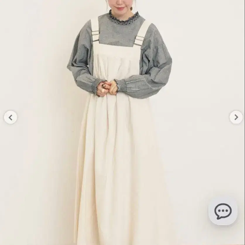 • 츠하루 사만사 모스모스 린넨 앞뒤 착용 에이프런 원피스 베이지