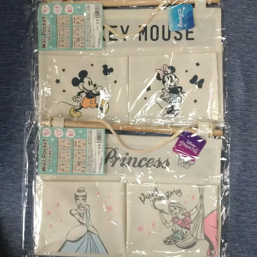 [세트] 디즈니 월 포켓 미키 프렌즈 프린세스 벽걸이 수납