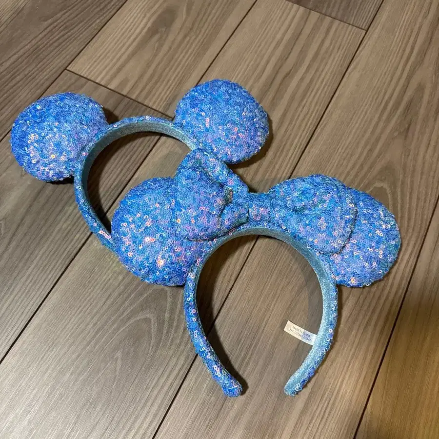 미키 귀 모양 페어 머리띠 파란색 스팽글