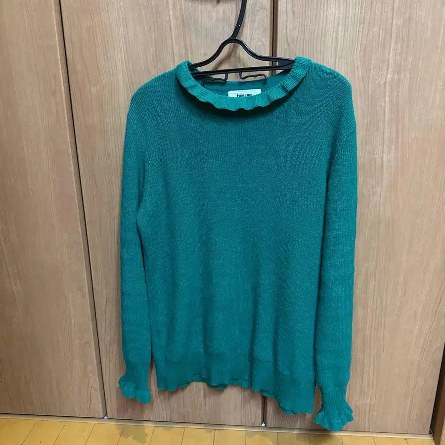 츠무구 랜덤 리브 니트 프릴 하이넥 GREEN