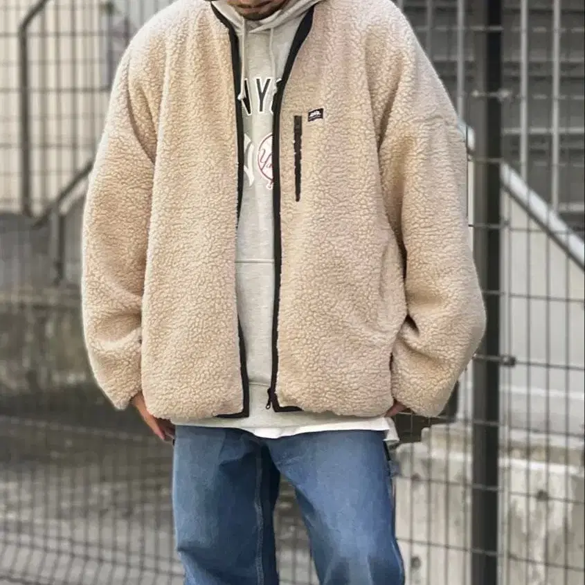 JAVA 2way 리버서블 보아 블루종 블랙 베이지