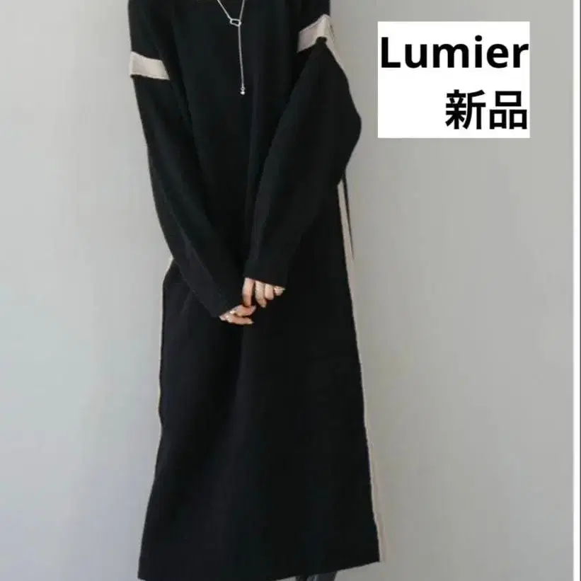 *새상품* lumier 뤼미에 바이컬러 니트 롱 원피스 블랙