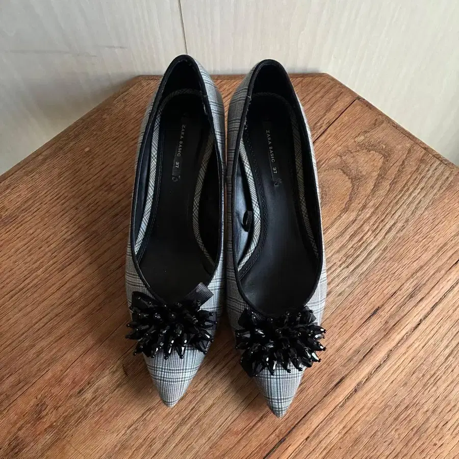 ZARA 그레이 계열 체크 하이힐 펌프스