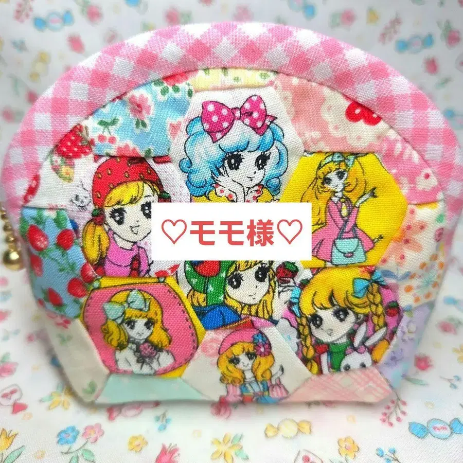 쇼와 레트로 꽃 헥사곤 패치워크 미니 파우치