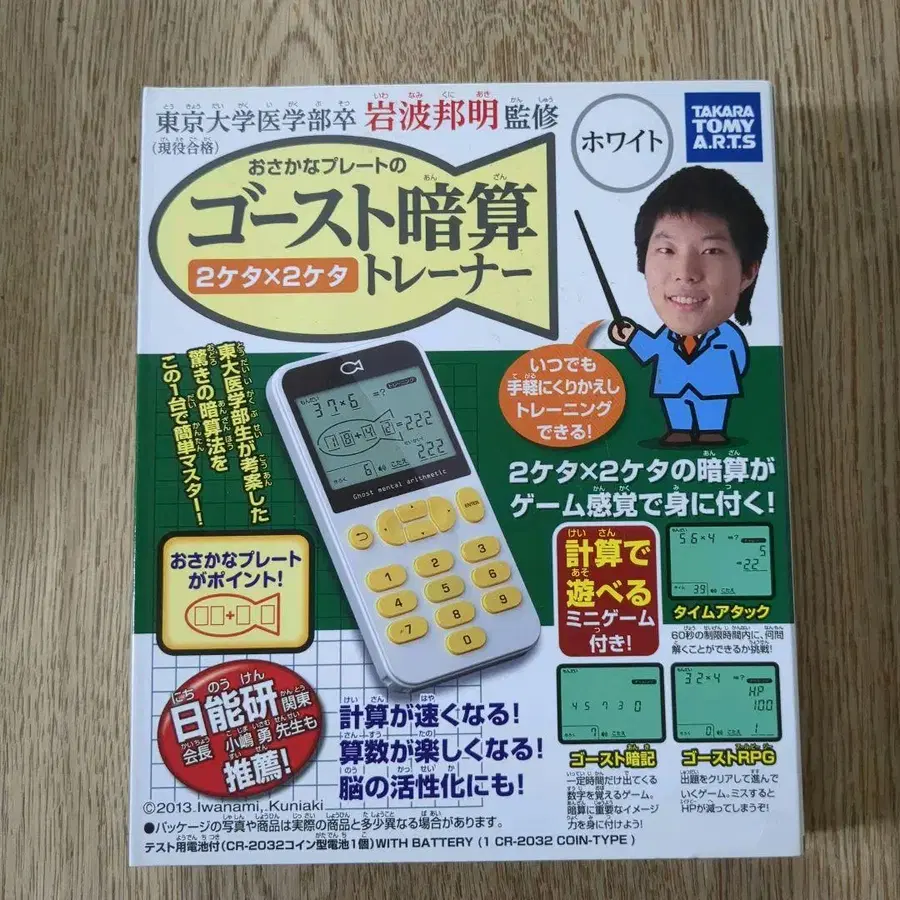 ★ 배송비 포함 ★ 당일 발송 ★ 본체는 미사용 새상품이지만, 장기 보관했던 상품입니다. 패키지에 접힘 및 얼룩이 있어 새상품에 가깝게 표기했습니다. 새 배터리로 교체했으므로 바로 사용하실 수 있습니다. [ 상품 설명 ] 타카라토미아츠의 [ 고스트 암산 트레이너 2자리 x 2자리 화이트 ] 입니다. 도쿄 대학 의학부 출신 이와나미 쿠니아키 씨가 고안한 암산법 [ 고스트 암산 ]을 게임 감각으로 배울 수 있는 포켓 사이즈 액정 게임입니다. [ 물고기 플레이트 ] 등의 플레이트를 사용하여 2자리 x 1자리부터 2자리 x 2자리 암산까지 단계적으로 마스터할 수 있습니다. 트레이닝 코스와 타임 어택 및 RPG 형식의 미니 게임을 포함한 챌린지 코스가 탑재되어 있어 질리지 않고 계속할 수 있습니다. 언제든지 간편하게 반복 트레이닝할 수 있으며, 계산력, 산수에 대한 흥미, 뇌 활성화에 도움이 됩니다. 대상 연령은 6세부터이며, 어린이부터 성인까지 뇌 트레이닝으로 사용할 수 있습니다. 반품, 취소는 접수하지 않습니다. 중고품으로 이해하신 후 구매 부탁드립니다.