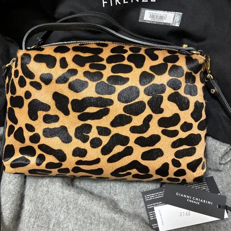 새상품급 GIANNI CHIARINI 레오파드 무늬 퍼 숄더백
