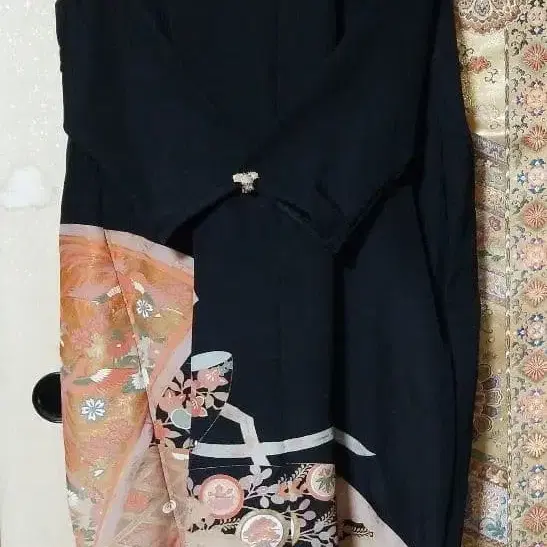 기모노 리메이크 블랙 전통 예복 기모노 럭셔리 길상 패턴 원피스